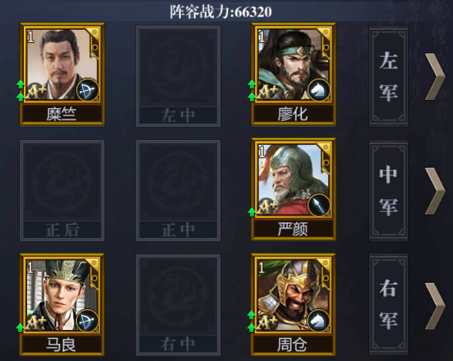 推荐阵容:糜竺、马良、周仓、廖化、严颜。该阵容围绕糜竺的技能【落石】作为主力输出,配合前排核心廖化的【伪报】技能,能够有效对抗普攻型敌人。马良的【技能削弱】则可以进一步保护队伍,增强生存能力。周仓和严颜的被动技能【托孤】在战死后能提供额外士气,为团队创造更多释放技能的机会。