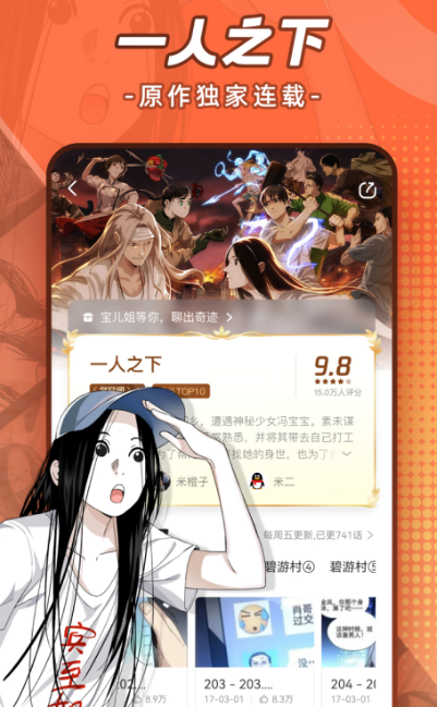 由腾讯推出的平台,提供00后喜爱的高人气国漫,如《斗罗大陆》、《一人之下》等,拥有免费频道,超过3万部全彩漫画,包含90后经典作品,如《海贼王》、《火影忍者》等。