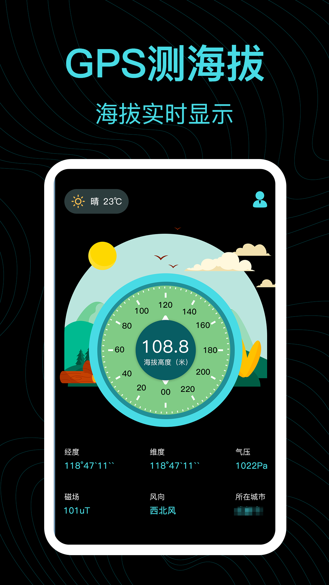集成了海拔测量、经纬度定位、气压测量等功能,还新增了指南针、户外天气监测等实用功能。实时显示海拔高度,同时提供GPS技术支持,让您清晰了解自身位置。